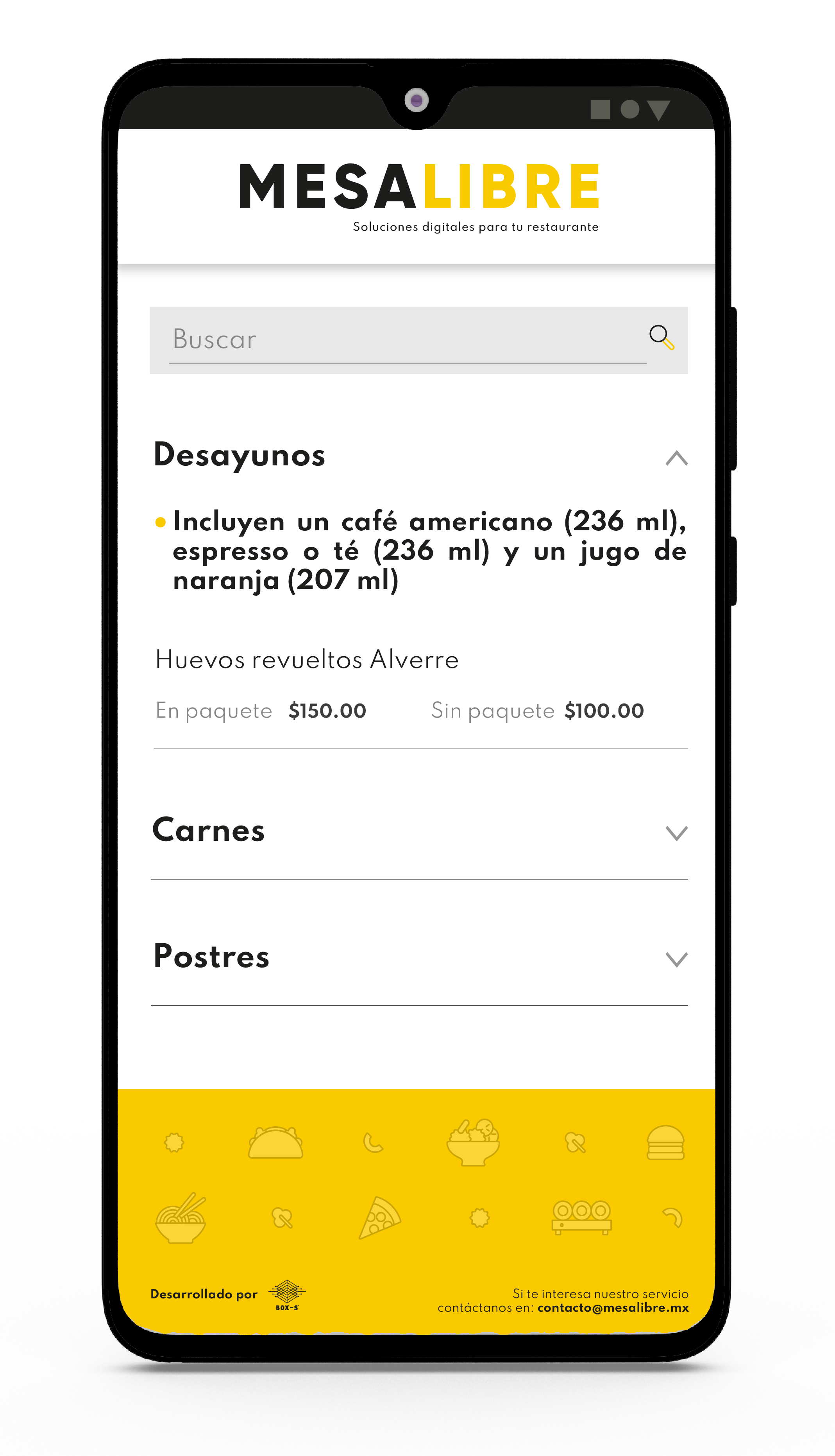 MESALIBRE creará y personalizará tu menú agregando el logo, fotografías, etiquetas de producto y más.